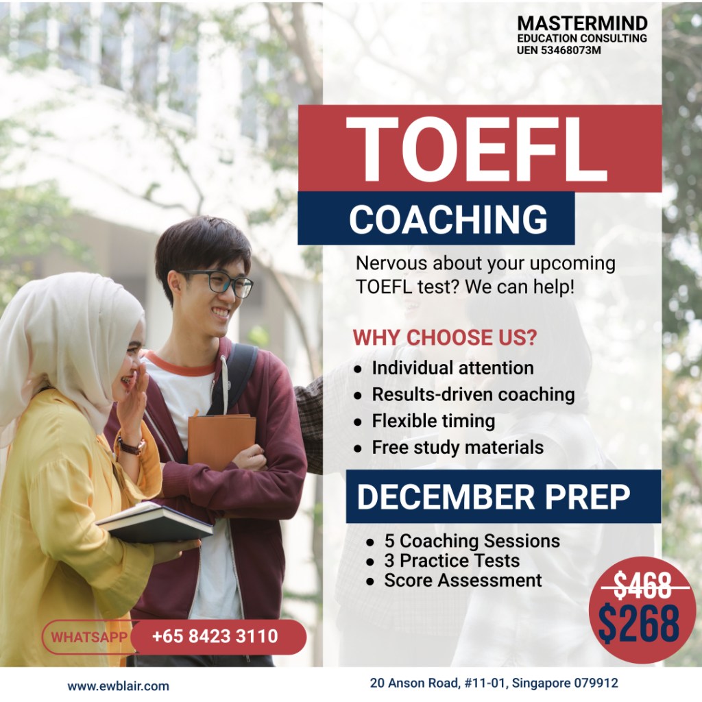 Don’t miss this chance to accelerate your TOEFL preparation and achieve the scores you need for a brighter future! Spaces are limited, so act fast to reserve your spot in our December Intensive TOEFL Prep Coaching Sessions.